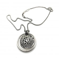 18 inches long, Silver plated, detailed collar pendant, In excellent like new condition. Price: $88.00 Sale Price: $35.00 You Save: $53.00 (60%)