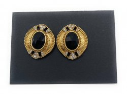 1 1/4 inches long, gold plated with black and clear accents, in excellent like new condition.