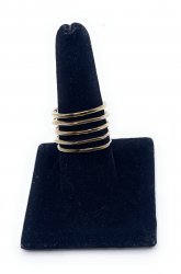 Four bands of geometric smoky and black diamond glass stones unite on a shiny gold band, in excellent like new condition. Price: $49.00 Sale Price: $20.00 You Save: $29.00 (59%)