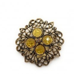 Antiqued gold plated with cut crystals and beads in goldtones. It is 2 inches in diameter. Sold new for $31, last in the 2007 catalog page 26. Former display item in excellent condition. Price: $31.00 Sale Price: $10.00 You Save: $21.00 (68%)
