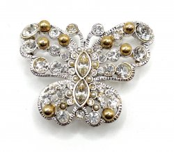 Silvertone with crystal accents. It is about 2 inches wide, 1.5 inch long. In excellent condition. Price: $39.00 Sale Price: $15.00 You Save: $24.00 (62%)