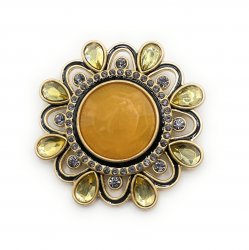 Silver plated with black and yellow crystals, about 1 1/4 inches long, In excellent condition