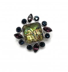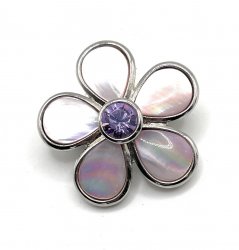 silver plated with pink purple tone mother of pearl and purple crystal center, about 1 inch long. New with tags on. Price: $22.00 Sale Price: $10.00 You Save: $12.00 (55%)