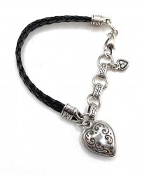 Trudys Hidden Treasures > Brighton Jewelry > Bracelet > Brighton Black Leather Heart Charm Bracelet - 4301