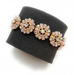 Pink with cut crystal accents, gold plated stretch bracelet, In good used condition.