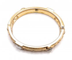Gold plated with cut crystal accents, hinged bracelet in excellent condition.