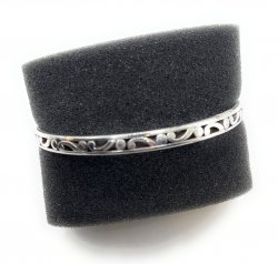 Contempo Slim Bangle Our enormously popular Contempo Collection gets a stacking-friendly addition �" a slender ultra fashionable bangle with open scrollwork. Style: #JF0890 Collection: Contempo Color: Silver Width: 1/4 Diameter: 2 1/2 Finish: Silver plated, in excellent like new condition.