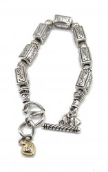 8.5 inches long, silver and gold plated, toggle clasp closure. In excellent used condition.