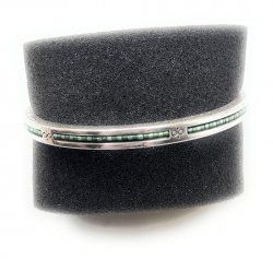 Silver plated bangle bracelet with green seedbeads accents, in excellent used condition.