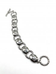 7.5 inches long, silver plated, toggle clasp. In excellent condition.
