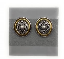 3/4 inches long, gold and silver plated post earrings, with embossed detailed design. In excellent like new condition.