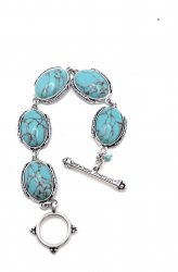 8 inches long, silver plated with Faux Turquoise, toggle clasp, in excellent like new condition.