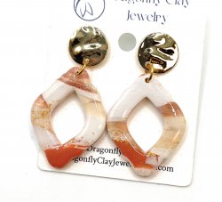 1.5 inches long, clay earrings, features cutout triangles with orange stamped, in new condition.