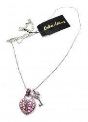 Silvertone, with Pink Heart, with key charm. 18-19 inches long, in new condition.