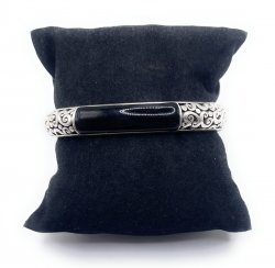 Silver plated with black onyx hinged bracelet, in like new condition.