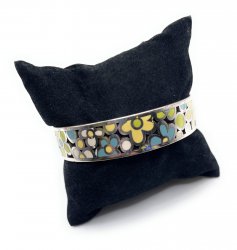 Silver plated with pastel blue and yellow bangle bracelet, in used condition.