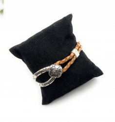 Braided tan bracelet, pebbled silver plated, 8 inches long. In good used condition.
