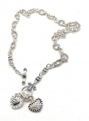 Antiqued silver plated crystals necklace, it is a toggle design. 17 1/4 inches long. Sold new for $39. In new condition. In the 2012-2013 catalog page 57.