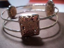 Silpada bracelet sterling silver double wired bangle with etched bronze flower decals. It is 2 " in diameter. It can be found in the new 2011-2012 catalog page 85H. New for $229. In new condition.