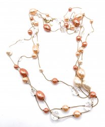 Gold plated with faux pearls and beads in peach tones. It is 67 inches long with a lobster claw closure. Sold new for $54. Last in the 2007 catalog page 21. New with tags on.