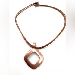 It coppertone, about 17 1/2 inch long with a 3 inch extender. Pendant is removable magnetic clasp. Last in the 2008 catalog page 55. In excellent condition, former display item.