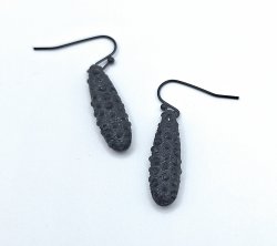 Black with black crystal on French wires, they are about 1 inches long. Former display item in excellent condition. May be shipped without earring card.