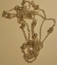 Silver plated with cut crystal accents. 48 inches long. Sold new for $33. Last in the 2006 catalog. Former display item in excellent condition.