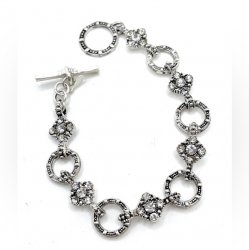 Silver plated bracelet with marascite with cut crystal accents with toggle clasp. It is 7 1/4 inches long. Last in the 2009 catalog. Former display item in excellent condition.