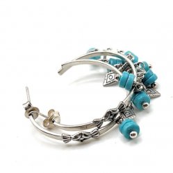 Features howlite or turquoise-hued beads and diamond-shaped Sterling details. Length: 1.5 inches long. in new condition.