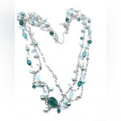 Necklace, 26-29" - Silvertone with bluetones accents. Former display item in excellent condition.