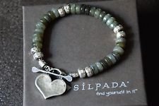 This beautiful Silpada bracelet features Labradorite beads and Silver beads with a hammered heart charm and toggle clasp closure.
