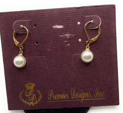 Duchess pearl earrings, they have a gold plated locking french wire. It is 3/4 inches long. In 2004 catalog. In new condition.