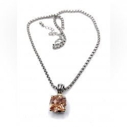 Silver plated necklace from Premier designs, it is 18 inches long, pendant features a champagne crystal, very pretty, about 1 3/4. In excellent condition.