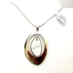 Detailed necklace in silvertone with mother of pearl. It is 16-19 inches long. Former display item in excellent condition. Last in the Spring/Summer 2010 catalog.