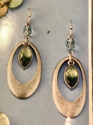 Matte silvertone with blue/green cut crystal accents, about 2 1/4 inch long. In new condition. May be shipped without earring card.