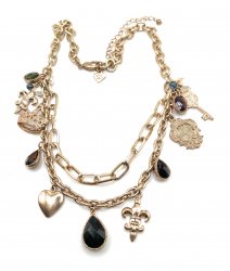 Gold plated chain, with Crystal and charms necklace. 18-19 inches long, in like new condition. Price: $28.00 Sale Price: $10.00 You Save: $18.00 (64%)