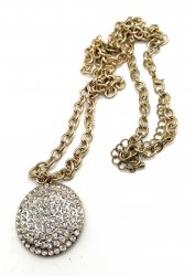 Black seedband chain, with Crystal accent pendant, pendant is 1.5 inches long, necklace is 18-19 inches long, in new condition. Price: $28.00 Sale Price: $10.00 You Save: $18.00 (64%)