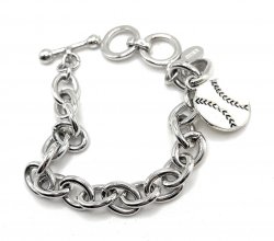 Silver bracelet, with red heart charm. 7 1/4 inches long. In excellent new condition.