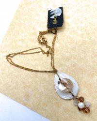 16-19 inches long, genuine mother of pearl pendant with amber charms, gold plated. Pendant is 2 inches long. In new condition. Price: $22.00 Sale Price: $10.00 You Save: $12.00 (55%)