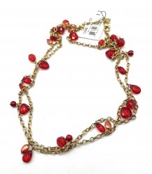 40 inches long, wear long or doubled stranded, gold plated with red beads. In new condition. Price: $22.00 Sale Price: $10.00 You Save: $12.00 (55%)