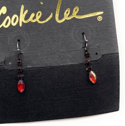 3/4 inches long, hematite with red crystal earrings, in new condition.
