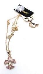 Gold plated chain, with pink pave set stones Fleur-de-lis necklace. 18-19 inches long, in new condition. Price: $28.00 Sale Price: $10.00 You Save: $18.00 (64%)