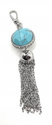 antique silver-plated, nickel-free plating, approx. 2.75" x 0.75" charm, 0.75" clip, clip closure, white mother-of pearl inlay, clear crystal pave, Turquoise. In new condition. Can be used as a charm or pendant. Price: $32.00 Sale Price: $15.00 You Save: $17.00 (53%)