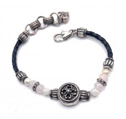silver plated, with brown cording and clear beads, has cross and heart charms, in excellent like new condition. It is 8 1/4 inches long Price: $68.00 Sale Price: $35.00 You Save: $33.00 (49%)