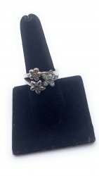 Silver plated ring, flower accented ring, in good used condition. Price: $68.00 Sale Price: $35.00 You Save: $33.00 (49%)