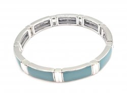 Aqua blue enamel on silver toned rhodium, making this a sleek and stylish thin stretch bracelet. Beachy, summer vibes!