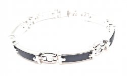 This beautiful bracelet features black and non-tarnishing silver-rhodium in a link styling with a secure clasp.