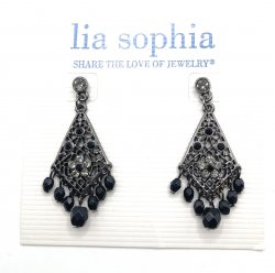 1.75 inches long, hematite with black beads and crystals. post earrings, in new condition.
