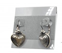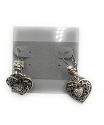 1.75 inch long, silver plated heart with crystal accents earrings. In excellent used condition. Price: $68.00 Sale Price: $35.00 You Save: $33.00 (49%)