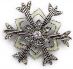Silvertone with clear crystal accents. It is about 1 1/4 inches long. Former display item in excellent condition. Price: $34.00 Sale Price: $10.00 You Save: $24.00 (71%)